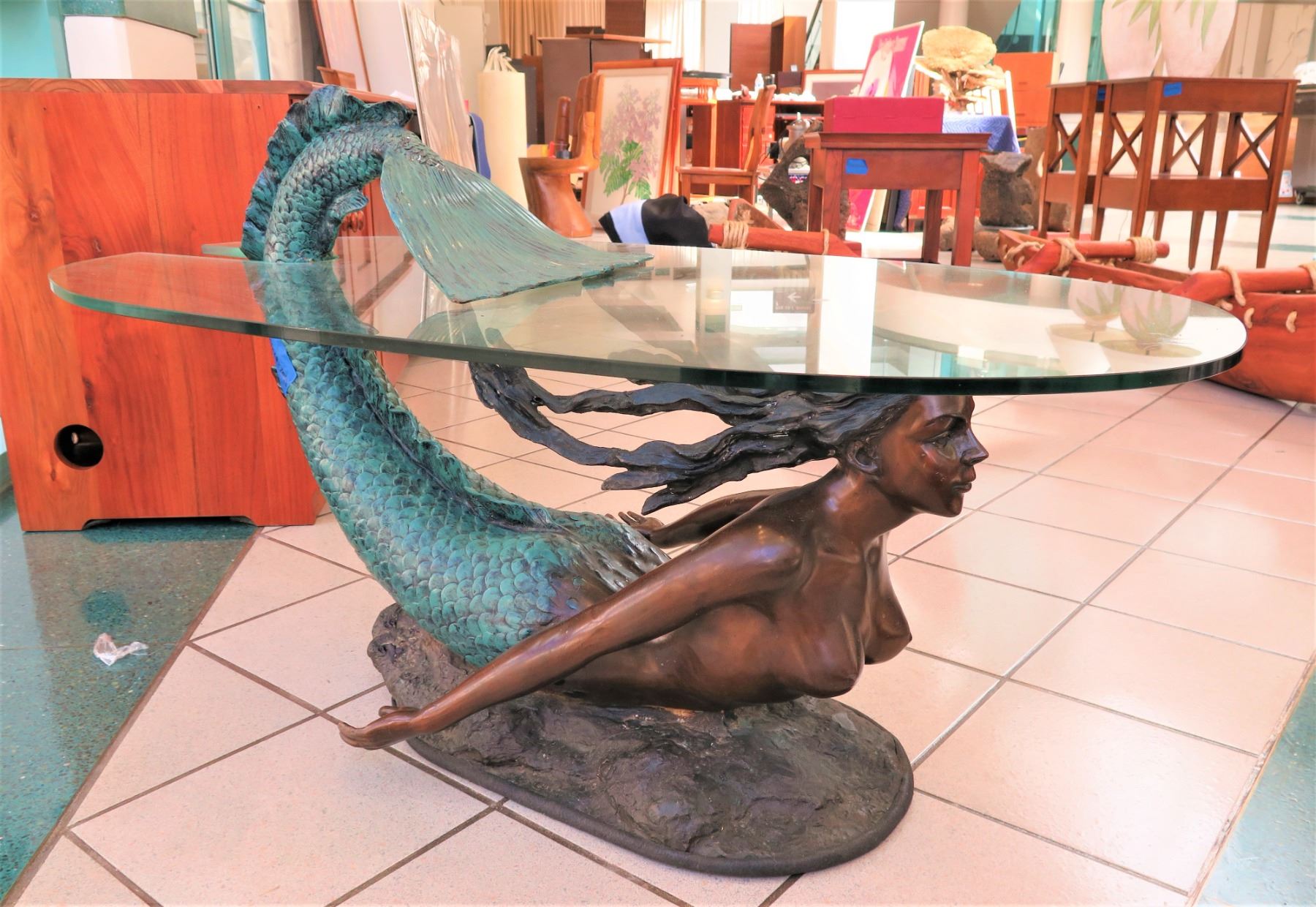 Product information product dimensions 45 x 27.5 x 17.7 inches Showing results for mermaid coffee table 111,757 results. This piece makes a great vintage conversation piece or for the true mermaid lover! This item measures 18.5h x 25.75l x 10.25w and is made of fiberglass resin with a bronze finish. Your guests will love the oval glass cocktail side table when they visit your home, and will talk about the oval white end table for weeks to come.