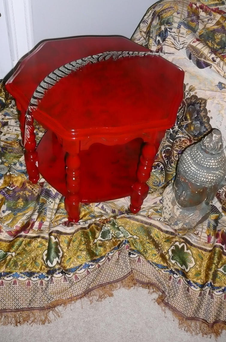 I painted this table an apple red and then applied a black glaze over the top.
